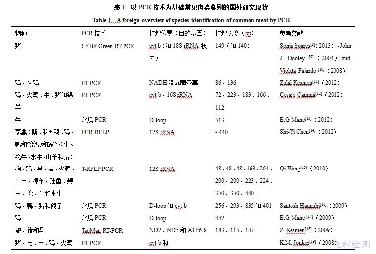 PCR技術為基礎常見肉類鑒別的國外研究現狀