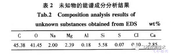 采用了Oxford IE350能譜儀對未知物的不同區(qū)域進行能譜分析,加速電壓為20 kV。