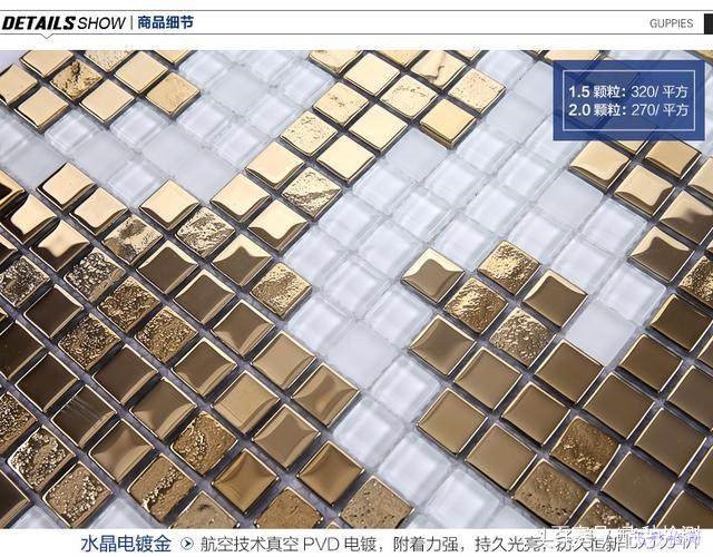 目前很多高端酒店、高端精裝修樓盤,室內(nèi)裝修金碧輝煌,這和鍍金陶瓷的廣泛應(yīng)用分不開的。例如很多高端樓盤在書房、客廳背景墻還有衛(wèi)生間都選擇了鍍金馬賽克瓷磚。價(jià)格基本上在300元/平方米左右。