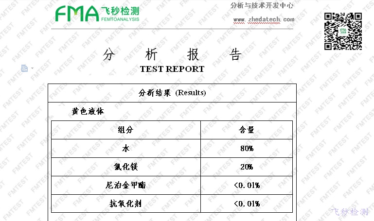 經(jīng)過飛秒工程師精細(xì)縝密分析,短短幾天后檢測結(jié)果就出來了,得出黃色油狀異物非油脂類化合物。